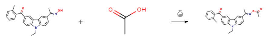 | With boric acid In water; chlorobenzene Solvent; Reflux; Experimental Procedure With an electric stirrer,Thermometer, and water separator were charged with 500 ml of chlorobenzene and 85.4 g of water1- (6-o-methylbenzoyl-N-ethylcarbazol-3-yl) -ethanone oxime (0.23 mol)27.6 g of acetic acid(0.46 mol) and 21.3 gBoric acid (0.34 mol) was added, and the mixture was refluxed. After completion of the reaction, carbon was successively usedSodium hydride solution, washing to neutral, adding anhydrous sodium sulfate drying, filtration. The filtrate was evaporated to remove the solventThe semi-solid was crystallized by adding 150 ml of ethanol to give 76.0 g of 1- (6-o-methylbenzoyl-N-Ethylcarbazol-3-yl) -ethanone oxime-O-acetyl, HPLC purity 98.7%, yield 80% | 80% |
