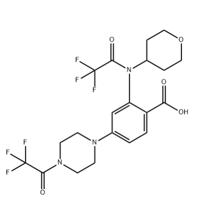 | Product Name | 2-(2,2,2-trifluoro-N-(oxepan-4-yl)acetamido)-4-(4-(trifluoroacetyl)piperazin-1-yl)benzoic acid |