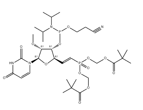 [({[(2,2-dimethylpropanoyl)oxy]methoxy}[(Z)-2-[(2R,3R,4R,5R)-5-(2,4-dioxo-1,2,3,4-tetrahydropyrimidin-1-yl)-3-hydroxy-4-methoxyoxolan-2-yl]ethenyl]phosphoryl)oxy]methyl 2,2-dimethylpropanoate CAS#: 2172373-55-4; ChemWhat Code: 1495033