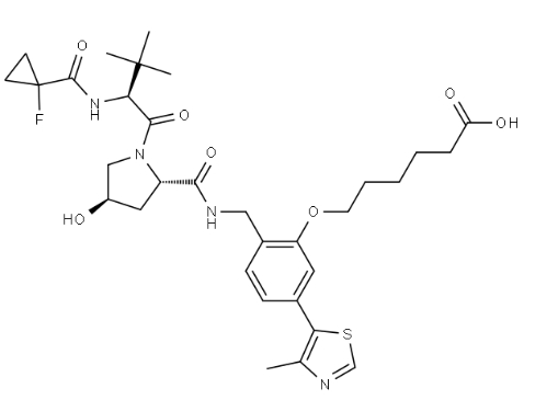 | Product Name | 6-(2-(((2S,4R)-1-((S)-2-(1-fluorocyclopropane-1-carboxamido)-3,3-dimethylbutanoyl)-4-hydroxypyrrolidine-2-carboxamido)methyl)-5-(4-methylthiazol-5-yl)phenoxy)hexanoic acid |