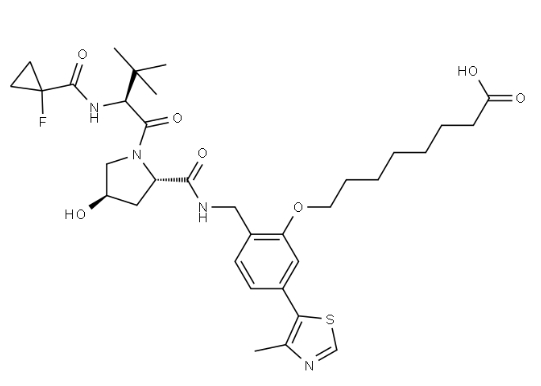 | Product Name | 8-(2-(((2S,4R)-1-((S)-2-(1-fluorocyclopropane-1-carboxamido)-3,3-dimethylbutanoyl)-4-hydroxypyrrolidine-2-carboxamido)methyl)-5-(4-methylthiazol-5-yl)phenoxy)octanoic acid |