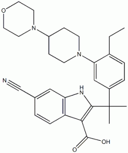 6-cyano-2-(2-(4-ethyl-3-(4-morpholinopiperidin-1-yl)phenyl)propan-2-yl)-1H-indole-3-carboxylic acid CAS#: 1256584-78-7