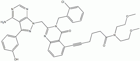 5-HexynaMide, 6-[2-[[4-aMino-3-(3-hydroxyphenyl)-1H-pyrazolo[3,4-d]pyriMidin-1-yl]Methyl]-3-[(2-chlorophenyl)Methyl]-3,4-dihydro-4-oxo-5-quinazolinyl]-N,N-bis(2-Methoxyethyl)- CAS#: 1293915-42-0 |