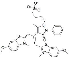 2-[2-[2,3-dihydro-5-methyl-3-oxo-2-phenyl-1-(4-sulphonatobutyl)-1H-pyrazol-4-yl]-3-(6-methoxy-3-methyl-3H-benzothiazol-2-ylidene)prop-1-enyl]-6-methoxy-3-methylbenzothiazolium CAS#: 2321-65-5 |