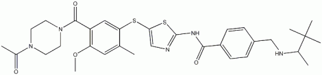 N-(5-((5-(4-Acetylpiperazine-1-carbonyl)-4-methoxy-2-methylphenyl)thio)thiazol-2-yl)-4-(((3,3-dimethylbutan-2-yl)amino)methyl)benzamide CAS#: 439575-02-7