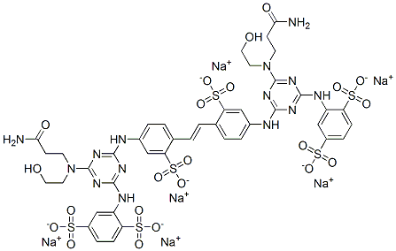 hexasodium 2,2′-[vinylenebis[(3-sulphonato-4,1-phenylene)imino[6-[(3-amino-3-oxopropyl)(2-hydroxyethyl)amino]-1,3,5-triazine-4,2-diyl]imino]]bis(benzene-1,4-disulphonate) CAS#: 67906-33-6 |