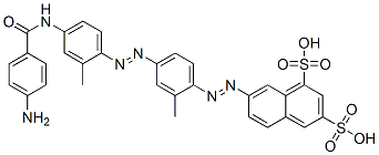 7-[[4-[[4-[(4-Aminobenzoyl)amino]-2-methylphenyl]azo]-2-methylphenyl]azo]-1,3-naphthalenedisulfonic acid CAS#: 63216-82-0 |