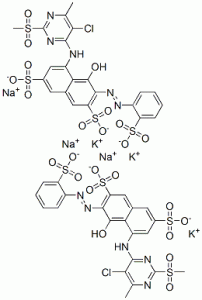 5-[[5-chloro-6-methyl-2-(methylsulphonyl)-4-pyrimidinyl]amino]-4-hydroxy-3-[(2-sulphophenyl)azo]naphthalene-2,7-disulphonic acid, potassium sodium salt CAS#: 72639-36-2