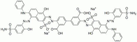 disodium dihydrogen 4,4′-bis[[5-[[5-(aminosulphonyl)-2-hydroxyphenyl]azo]-1-hydroxy-6-(phenylamino)-3-sulphonato-2-naphthyl]azo][1,1′-biphenyl]-3,3′-dicarboxylate CAS#: 72939-54-9 |