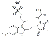 sodium alpha-methyl 5-[[6-methoxy-3-(4-sulphonato-2-butyl)benzoxazol-2(3H)-ylidene]ethylidene]-3-methyl-4-oxo-2-thioxoimidazolidin-1-ylacetate CAS#: 84434-25-3 |
