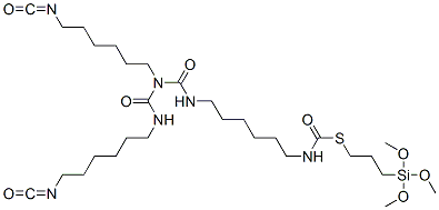 2,9,11,13-Tetraazanonadecanethioic acid, 19-isocyanato-11-(6-isocyanatohexyl)-10,12-dioxo-, S-3-(trimethoxysilyl)propyl ester CAS#: 85702-90-5 |