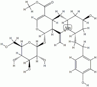 (2S)-3α-Ethenyl-2β-(β-D-glucopyranosyloxy)-3,4-dihydro-4α-[[(2R,4S,6S)-tetrahydro-4-hydroxy-6-[2-(4-hydroxyphenyl)ethyl]-2H-pyran-2-yl]methyl]-2H-pyran-5-carboxylic acid methyl ester CAS#: 81417-80-3 |