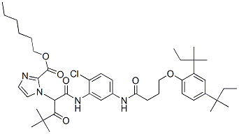 hexyl 1-[1-[[[5-[[4-[2,4-bis(tert-pentyl)phenoxy]-1-oxobutyl]amino]-2-chlorophenyl]amino]carbonyl]-3,3-dimethyl-2-oxobutyl]-1H-imidazolecarboxylate CAS#: 84184-25-8 |