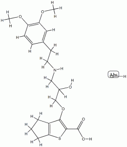 6-[3-[2-(3,4-dimethoxyphenyl)ethylamino]-2-hydroxy-propoxy]-8-thiabicy clo[3.3.0]octa-6,9-diene-7-carboxylic acid hydrochloride CAS#: 85462-88-0 |