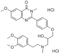 4(3H)-Quinazolinone, 2-(4-(3-((2-(3,4-dimethoxyphenyl)ethyl)methylamin o)-2-hydroxypropoxy)phenyl)-6-methoxy-3-methyl-, dihydrochloride CAS#: 83722-15-0 |