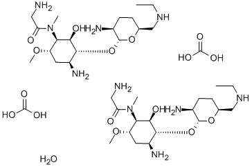4-Amino-1-[(aminoacetyl)methylamino]-3-O-[2-amino-2,3,4,6-tetradeoxy-6-(ethylamino)-α-D-erythro-hexopyranosyl]-1,4,5-trideoxy-6-O-methyl-L-chiro-inositol CAS#: 83728-93-2 |