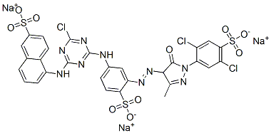 trisodium 5-[[4-chloro-6-[[3-[[1-(2,5-dichloro-4-sulphonatophenyl)-4,5-dihydro-3-methyl-5-oxo-1H-pyrazol-4-yl]azo]-4-sulphonatophenyl]amino]-1,3,5-triazin-2-yl]amino]naphthalene-2-sulphonate CAS#: 85750-16-9 |