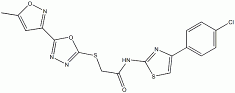 N-[4-(4-chlorophenyl)-1,3-thiazol-2-yl]-2-{[5-(5-methyl-3-isoxazolyl)-1,3,4-oxadiazol-2-yl]sulfanyl}acetamide CAS#: 876880-43-2 |