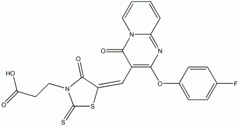 3-[(5Z)-5-{[2-(4-fluorophenoxy)-4-oxo-4H-pyrido[1,2-a]pyrimidin-3-yl]methylidene}-4-oxo-2-thioxo-1,3-thiazolidin-3-yl]propanoic acid CAS#: 847378-55-6 |