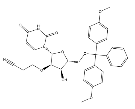 N-(1-[(2R,3R,4R,5R)-5-[(bis(4-methoxyphenyl)(phenyl)methoxy)methyl]-3-(2-cyanoethoxy)-4-hydroxyoxolan-2-yl]-5-methyl-2-oxo-1,2-dihydropyrimidin-4-yl)benzamide CAS#: 864837-14-9; ChemWhat Code: 1495059