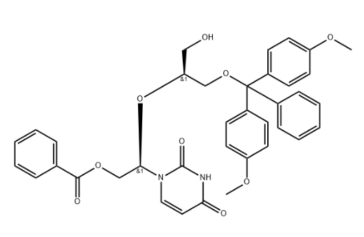 (R)-2-(((S)-1-(bis(4-methoxyphenyl)(phenyl)methoxy)-3-hydroxypropan-2-yl)oxy)-2-(2,4-dioxo-3,4-dihydropyrimidin-1(2H)-yl)ethyl benzoate CAS#: 251943-34-7; ChemWhat Code: 1493873